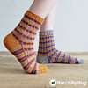Construction and Shaping: toe-up, short row heel, star toe, mosaic (slip stitch) colorwork