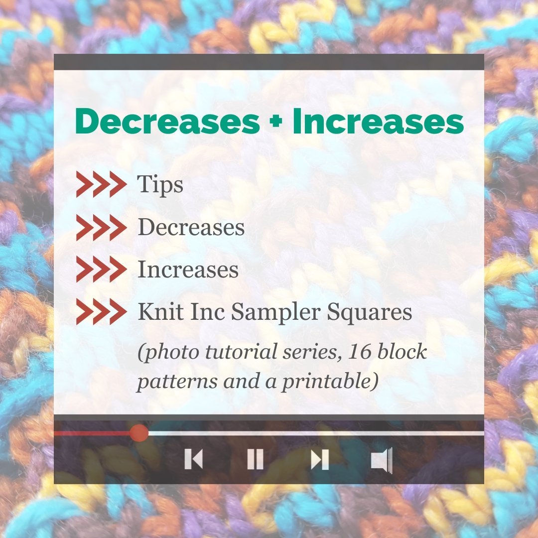 Also included is our Knit Inc Sampler Squares photo tutorial series with block patterns so you can compare the look of 16 different increases side by side.