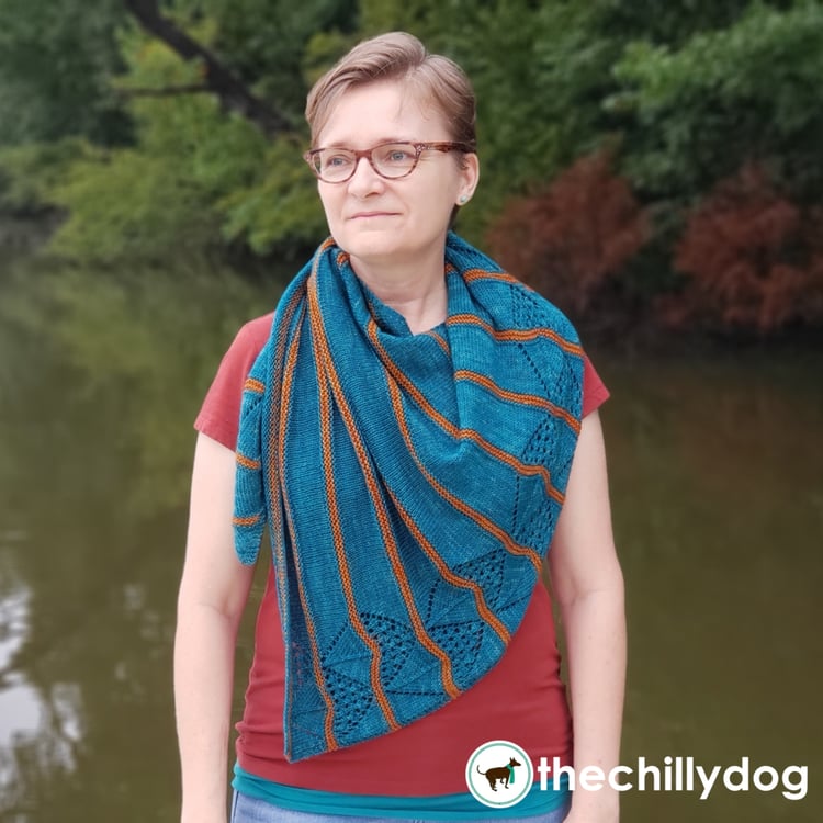 Recommended Yarn:Â HiKoo Madrona (402 yds/100g), shown in colors #1414 Sockeye Salmon and #1405 Pacific Blue