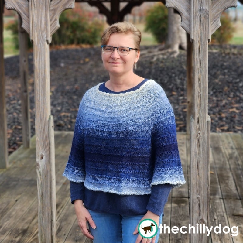 This easy-to-wear poncho pattern is knit in the round, from the top down and has simple raglan shaping. There are evenly-spaced, dimensional stripes to accentuate the stunning color shifts which naturally occur in the recommended HiKoo Concentric yarn.