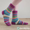 Recommended Yarn: Schoppel das Paar (shown in color2321 Hobbygärten) with coordinating Zitron Trekking Sport (shown in color 1407)