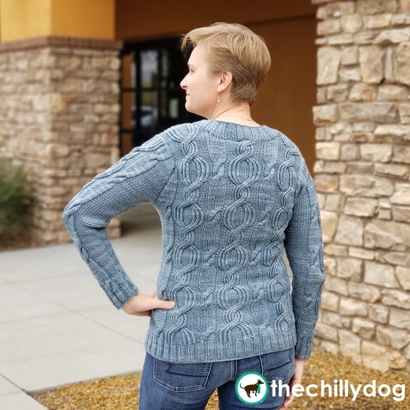 To minimize the amount of joining needed to finish the sweater, the body (front and back) is worked flat (in rows) as a single piece on long circular needles to accommodate the width.